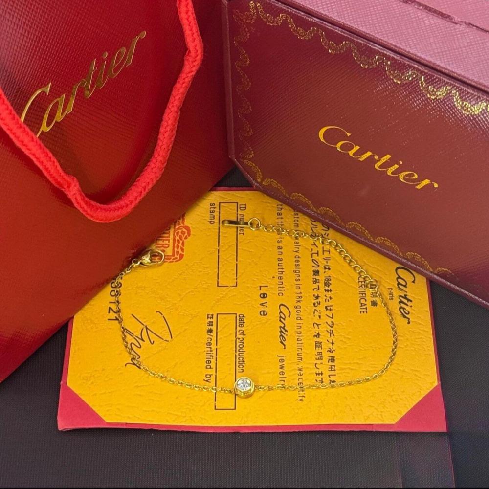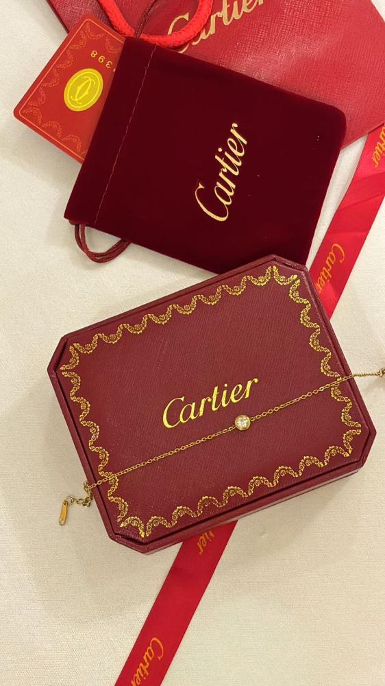 سوار رقيق من Cartier بسلسلة ذهبية وتفاصيل فصوص لامعة تضفي أناقة خالدة، مثالي للإهداء أو لإضافة لمسة فاخرة على إطلالتك اليومية.